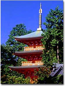 三重塔 和48年5月に建立されたこの塔は、総檜造りで、建築技術の粋を集めて作られた、明治以来の最も優れたものといわれている。 内陣には村岡久作師の作になる虚空蔵菩薩が祀られ、仏塔古寺十八尊霊場第十六番、神戸十三仏霊場満願札所にも指定されている。 |