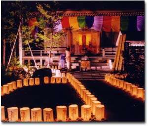 一年中で観音さまのご利益を最も多くいただける日として知られています。 この日にお参りすると、一日で四万六千日お参りしたのと等しい功徳とご利益があるといわれています。 8月8日と9日のさかいの時刻、すなわち9日午前0時には、ご本尊の観音さまに向けて天から除災招福の星がくだると言い伝えられています。 |