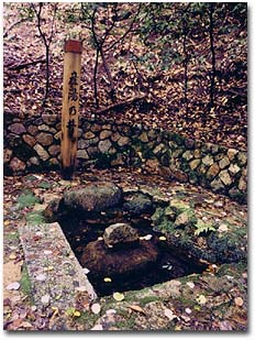 産湯の井 昔からこの井戸の清水は子の安産と息災に大きなご利益があると信じられています。 霊峰摩耶の地下をくぐって湧き出る水を神聖なものとし、近郷の里人は出産の折、わざわざ摩耶山まで登り、この清水を竹筒に入れて持って産湯に用いたといわれます。 また、大日如来をあらわす梵字が彫られた鎌倉時代の聖石を、井戸の底におしずめしています。 今も冷たい清水が湧き出ています。 |