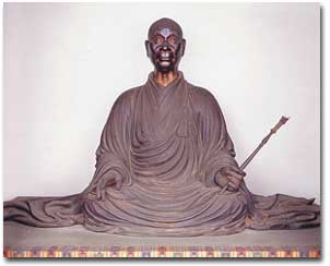 興正菩薩叡尊坐像 弘安三年(1280)に、仏師善春という善円の息子が造った興正菩薩叡尊の八十歳の生前の像です。 叡尊像で注目されるのは、この肖像が叡尊自身が日頃立ち入り、生活していた空間(愛染明王坐像の隣の部屋)に安置されていることです。 先年、像内からおびただしい納入文書類が発見され、数千人におよぶ弟子僧俗の結縁によって造られたものであることが明らかとなった。 |