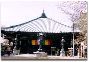 愛染堂 本堂からやや下った所に建てられた愛染堂は、かつて勤操僧正がこの寺に住んでいた時、弘法大師空海が訪れてきて、、この場所で剃髪・得度して修行したといいます。 愛染堂の中には愛染明王、勤操僧正、弘法大師の像が安置されています。 愛染堂の前には、「弘法大師御剃髪所跡」の銘の刻まれた石碑、「弘法大師報恩感徳の為」と書かれた灯籠が建てられています。 |